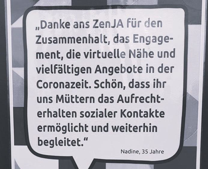 In unserem ZenJA Mütterzentrum kannst du dich ausruhen oder aktiv sein, Unterstützung finden oder selbst mithelfen. In unserem Familiencafé sollst du dich zuhause fühlen: Es gibt ein Wohnzimmer und ein Spielzimmer. Eine Küche und ein Esszimmer. Und einen Rückzugsraum für die Älteren. Und viel Platz zum Lernen, Gestalten und Bewegen. Und einen schönen Garten mit Spielplatz für die Kleinen.